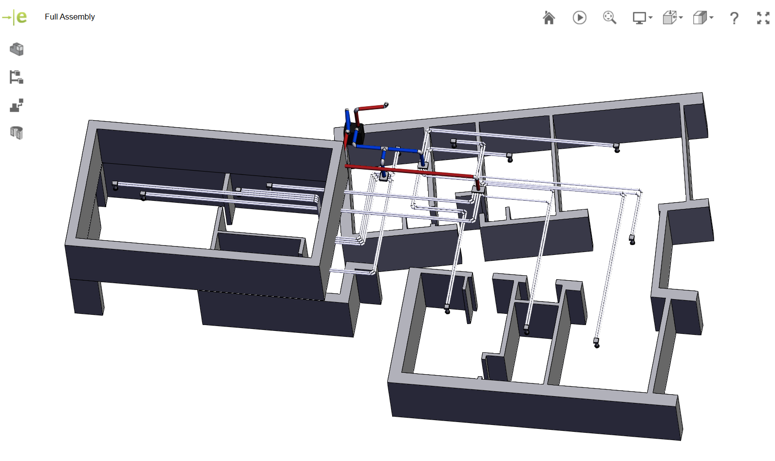 The images here are an existing HVAC design created in Solidworks. I have included a basic, extruded and wireframe model for convenient viewing, This was created and exported for customers to view on their phone when on site for convienient guiding of installation.